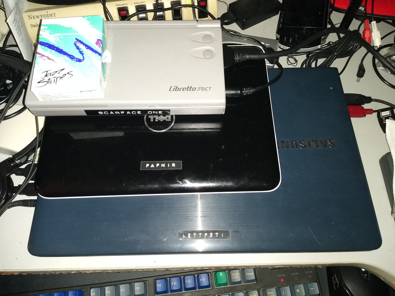 Found at a garage sale in my neighborhood in late 2007 for a perhaps-too-much $100, Gjallarhorn was the original Craptop, to me. Absurdly heavy, but also my very first laptop, it came to me running Windows XP (which was too much for a 600 MHz, 128 MB laptop to handle). It's been through a lot, as my primary laptop for two years; it has suffered some physical damage (broken vent covers, floppy drive faceplate warped, some rubber corners are threatening to detach), and at this point, its keyboard and screen have degraded enough that the poor thing is unusable. With some love, I'm sure it could be restored to its former glory, but that hinges on my desire to actually do that. I did at least invest in a cheap SODIMM module to bump it up to 256 MB of RAM, back in the day; that gave it some much needed head-room to run those essential programs... like an IRC client and a music player.