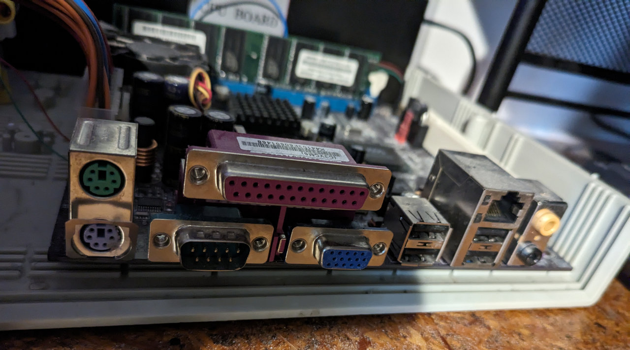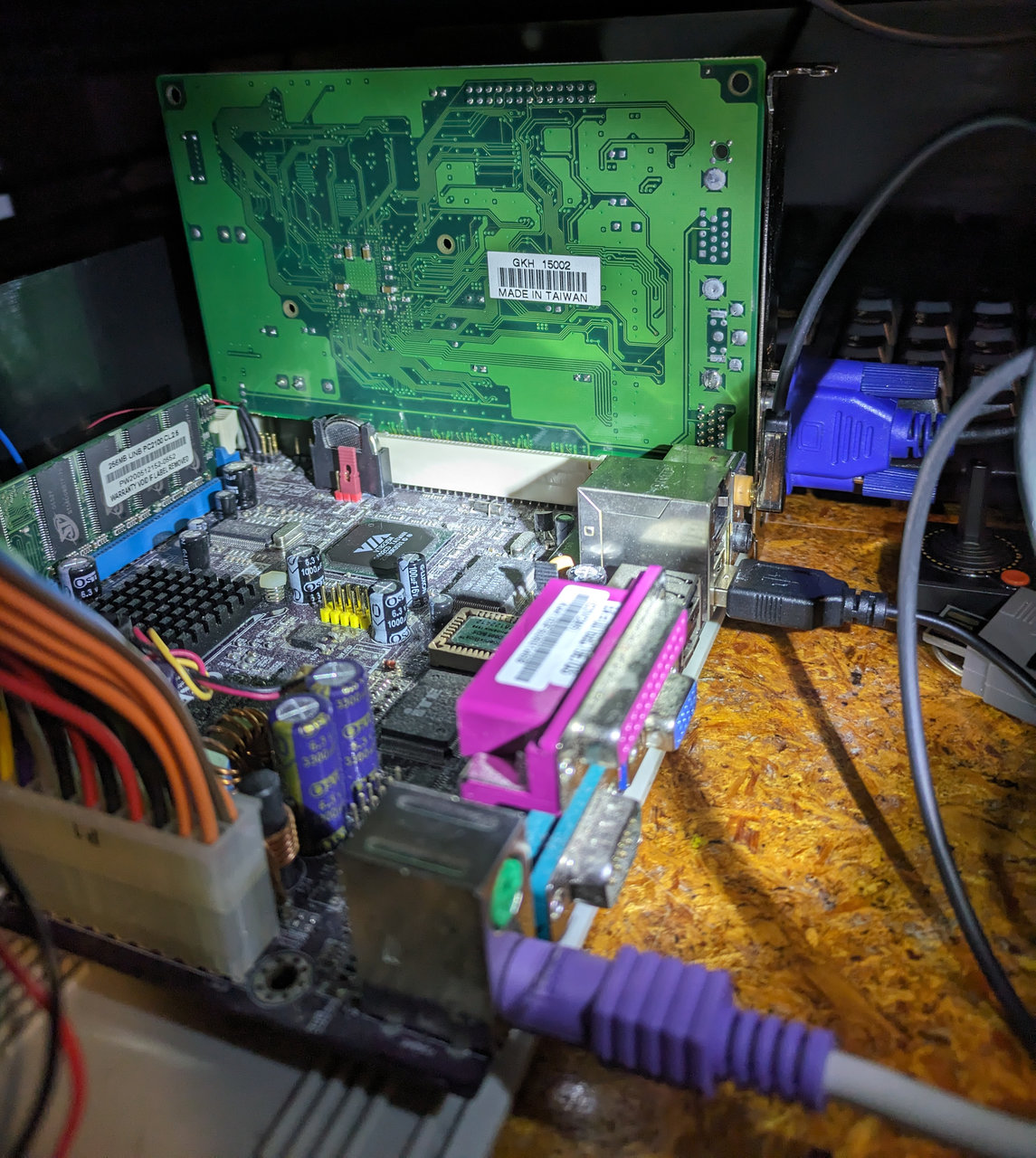 My grandparents' old Dell desktop, presumably bought out of necessity (and tight budget). Even for the time, these specs were probably nothing special, but it only took adding a graphics card to get it up to the task of acting as a Windows XP-era retro machine. At one point she was running a GeForce 8400 GS, which may not sound amazing, but I was shocked to find that those had PCI versions. Unfortunately, the 8400 is somewhat unwell, so I've switched back to the FX 5500, which does a reasonable job, even if it doesn't run the likes of UT 2004 very well.