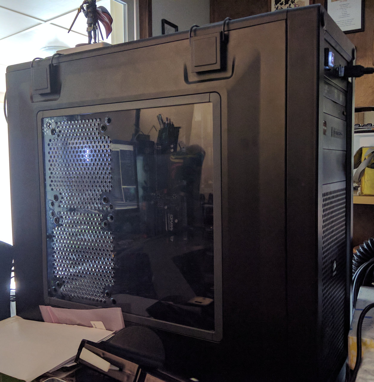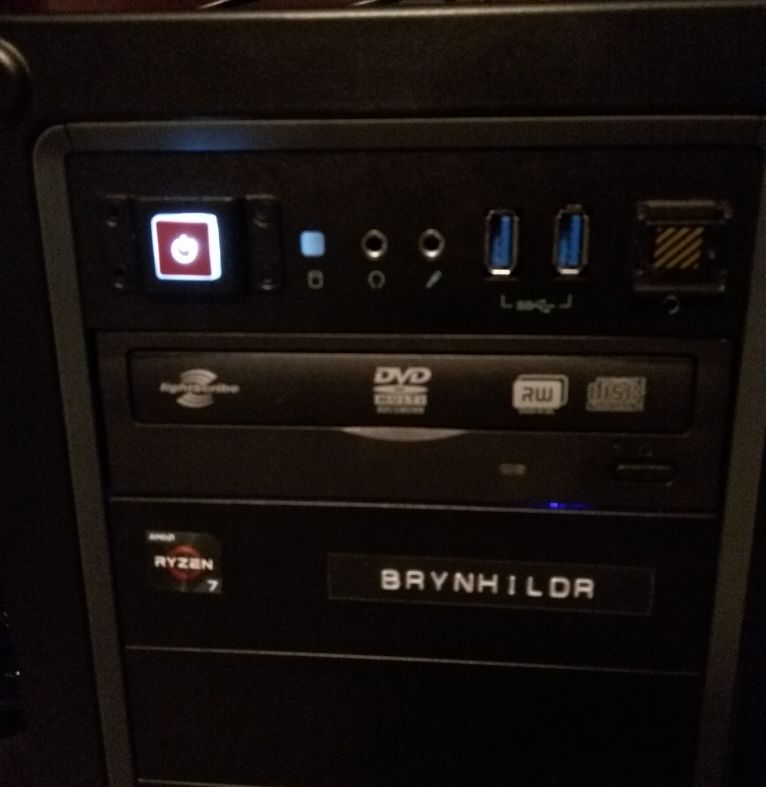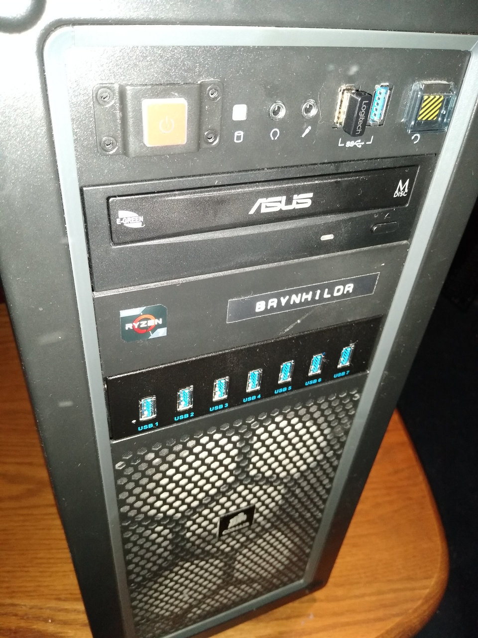 The Gaming Rig, the main machine, the one thing that does everything. She's powerful, quick, and set up for lean-back gaming. Many a year ago, she was Arngrim (the berserker, but specifically inspired by Valkyrie Profile), but individual components (and the case) have changed slowly enough over time that I eventually declared she needed a new name. She'll probably remain on Windows for the forseeable future; gaming on Linux might not suck as much as it traditionally used to, but I'm not sure that I see it becoming an all-encompassing solution. Mostly, I'm wary of whether the VR headset will work right with it.
