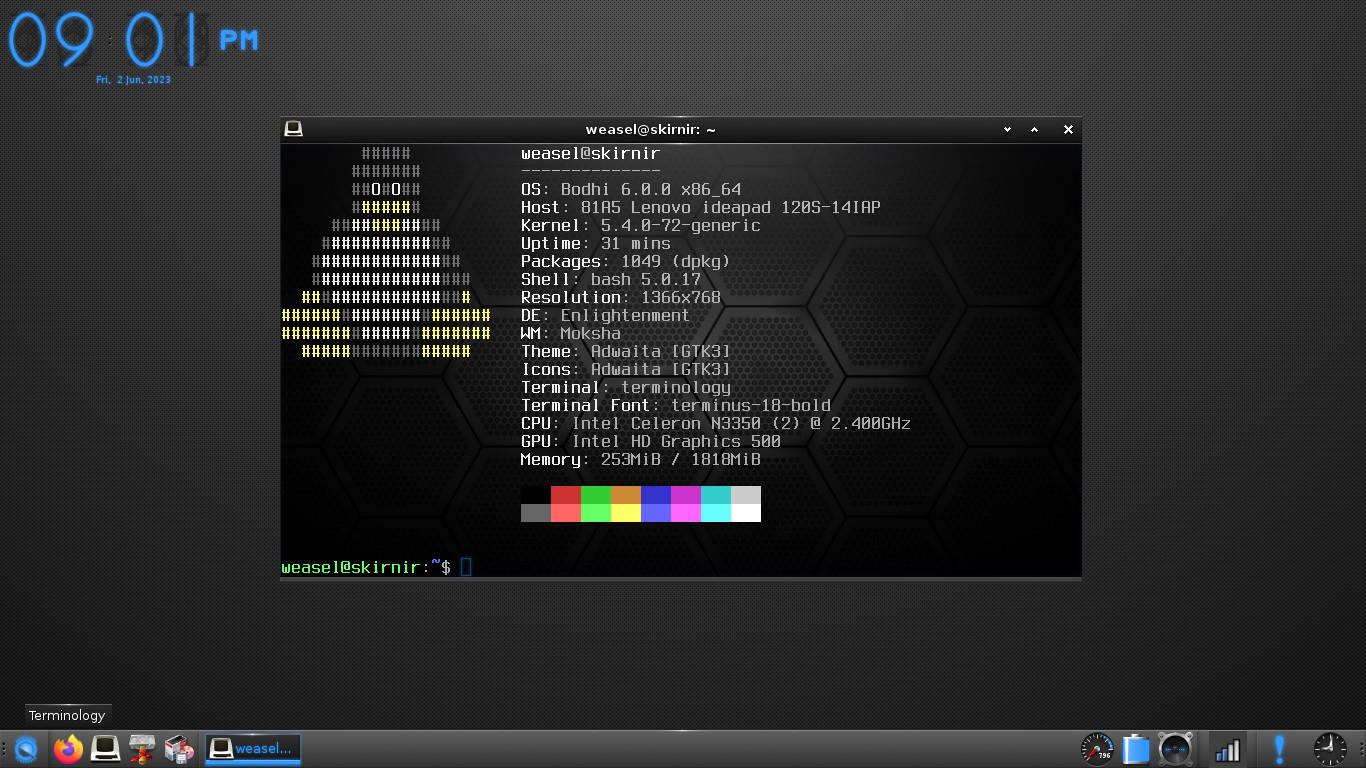 Initially specced as a "Winbook" - a low-cost, low-spec laptop intended to interact with the world exclusively through a web browser and nothing else, like a Chromebook but running Windows 10 - I found Skirnir was not meeting its potential that way. However, with only 32 GB of internal storage, OS options were quite limited. I experimented with a few Linuxes (like Bodhi, because Enlightenment is a fun WM) until settling on Linux Mint, which surprisingly doesn't run awfully with only 2 GB of RAM. Its CPU vastly outstrips the rest of the specs, somehow, leading me to add a title to its Norse name.