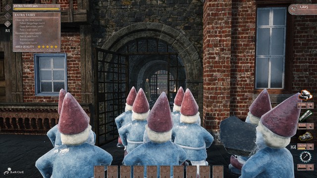Low-key absurdity notwithstanding, PowerWash exemplifies what I would call the “chore game”: a gamified simulation of an every-day task. Other notable games like House Flipper, Leaf Blower Co., WW2 Rebuilder, and Fresh Start Cleaning Simulator, fill out the bulk of their play time by tasking the player with a long, sometimes tedious clean-up task, and letting the player decide how to divide it up. For the most part, these games are deadly serious, only developing mild quirks over time as they are augmented with tie-in DLC or ill-advised support for user generated add-ons (or just allowances for the player to be an utter goofball). Maybe there are occasional lawn gnomes or cats to interact with, or inexplicable medieval peasants or Dark Souls bonfires in their respective base games, but any outward appearance of seriousness goes out the window once they introduce, say, Final Fantasy 7, SpongeBob SquarePants, or Warhammer 40K-themed missions for the player to spray, scrub, or interior-redecorate.