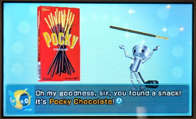 Even weirder is the sudden appearance of real-world snack food products as collectible treasures. The aliens aren’t content with stealing entire cargo ships and oil silos; they’re apparently stealing the world’s supply of candies, chocolates, and potato chips, too. You find them tucked away in secret areas, in treasure chests, and the game gives over-the-top fanfare to your collection of Pocky sticks and packs of Mentos. Not just finding them, either; you’ll run into toys once in a while that will happily sing the praises of each snack food’s flavor, while doing aerobatics across the screen. It’s quite a lot of hooberbloob for breath mints, especially compared to the entire rest of the game.