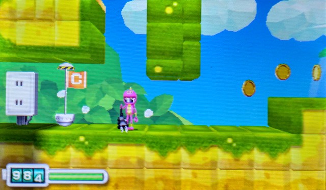 The environments are devoid of wacky characters aside from a small handful of toys; it’s unclear who even lives in these places. Drake Redcrest is back, but all he does is complain about how the world is at Peace and there is no Evil to Fight. A retro wind-up robot toy asks you nonsensical trivia questions, and doles out a meager helping of Happy Points if you answer correctly. There are new Chibi-Tots, even tinier versions of Chibi-Robo, hiding in random places, but they, too, just give you a couple of Happy Points and encourage you to find them again. They don’t have stories or wants. They’re just kind of… there.