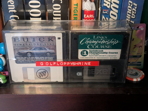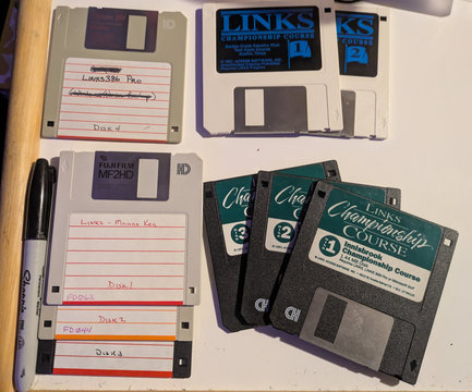 Squirreled away in a nondescript cabinet in Dad's garage, behind several cans of spray paint and many layers of sawdust, were two Very Large floppy disk containers, containing wealths of Software, both legit and Backed Up forms. Within them, I found three Links Championship Courses (Innisbrook and Mauna Kea for Links 386, and Barton Creek for original Links), and an isolated Disk 4 of Links 386 Pro (no idea where the other 3 disks went). Spent a good couple of hours sifting through every disk in those containers, backing up all of the contents to disk images. At some point I'll also check that they aren't otherwise preserved to Internet Archive. Amazingly they all worked! Those containers were doing their jobs well, these past decades.