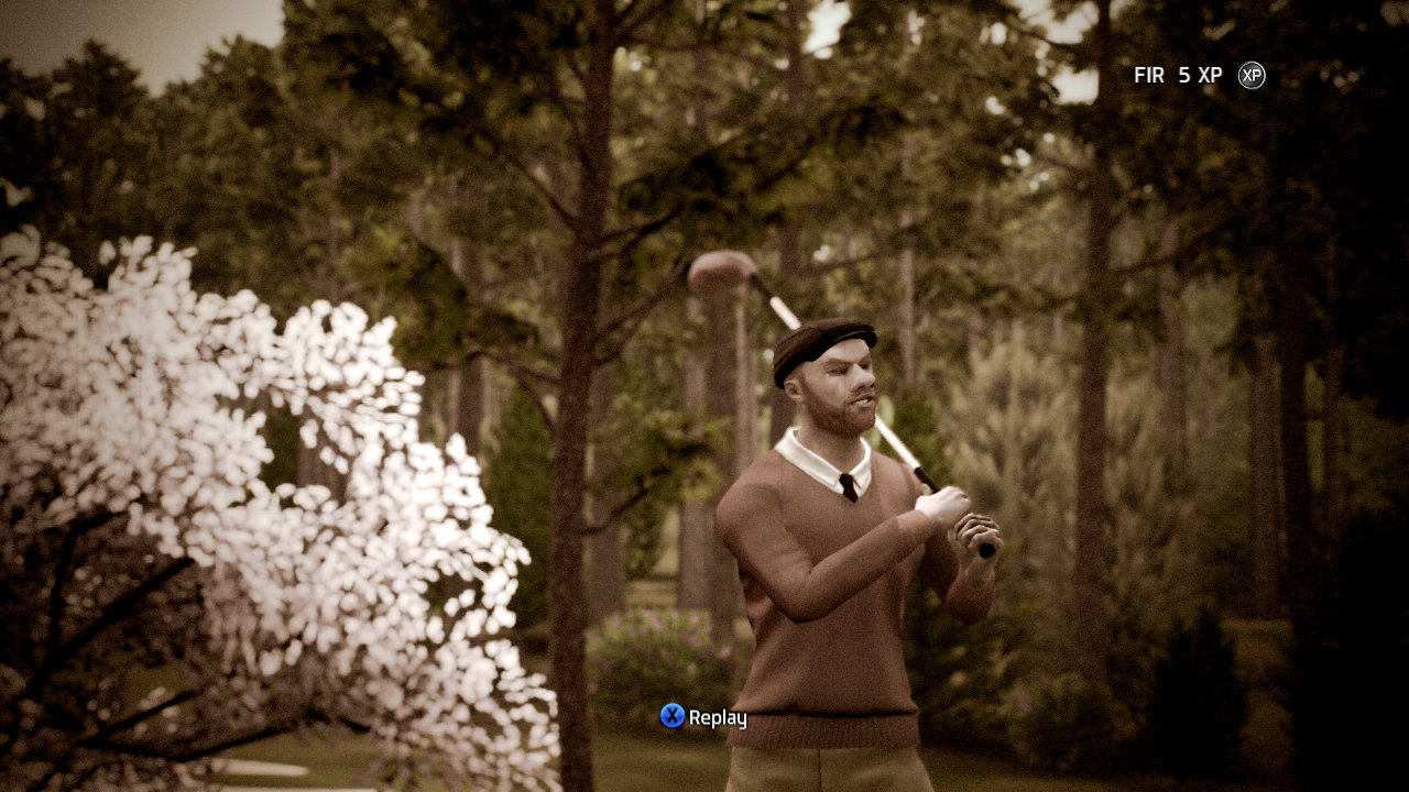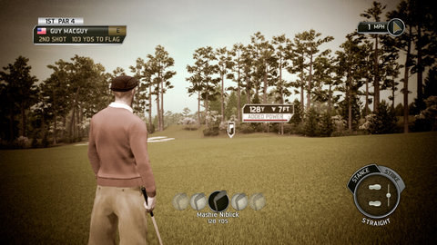 Tiger Woods 14 had a historical gimmick in all versions of the game. The big draw was being able to face off against historical golfers in their prime, like Nicklaus and Palmer. The Masters Historic Edition, though, includes some additional historic courses to go with it, such as the 1934 version of Augusta National, complete with sepia film-grain effects and vintage Proper Golfing Attire. One thing I was not expecting them to commit to, though, is the obsolete golf clubs. Rather than the modern nomenclature of Woods and Irons with numbers, Augusta 1934 outfits your golfer - regardless of their already chosen equipment - with the big pants, sweater vest, and an array of clubs with names like "niblick," "spade mashie," and "cleek." I'd always thought Golf Story was joking about those, but nah, you absolutely do need to choose between your brassie or your spoon when estimating the distance of your next shot.