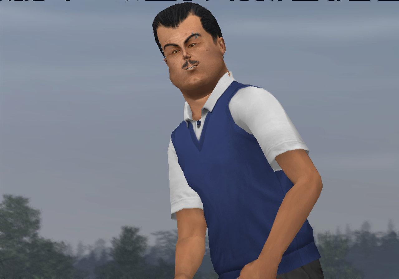 | Guy MacGuy, whom I didn't get enough screenshots of, carries his mashie niblick to the fairway. |